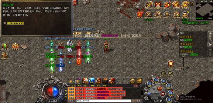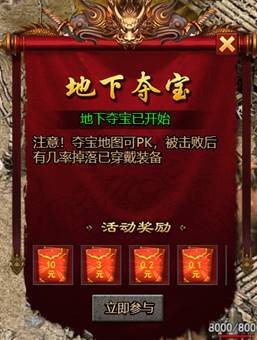 (3) 每日11:01、14:01、21:01、23:01开启NPC送宝,在NPC周围散落大量宝物。宝物掉落后3分钟内无法捡取,3分钟后所有人都可捡取