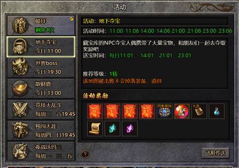(4) 点击活动-地下夺宝-飞鞋传送可直接前往藏宝库参加活动