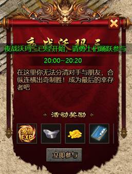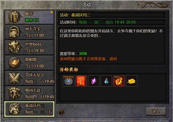 (1) 每周一、周三、周五晚19:45-20:05开放夜战沃玛三活动